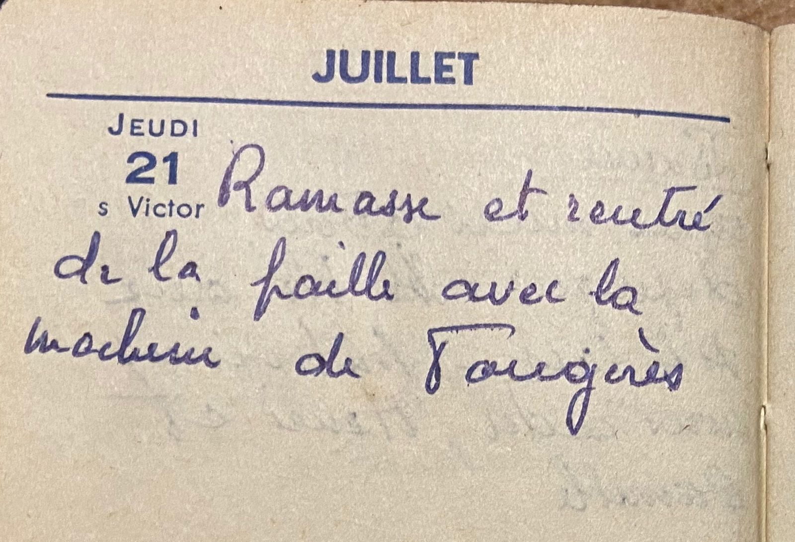 Avons commencé à dépiquer avec la machine de Faugères, fait 69 sacs de blé